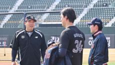 [사진] 김현수와 대화하는 김원중, 최준용