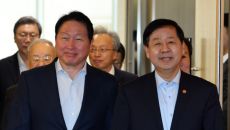 [포토]이야기 나누며 입장하는 구윤철-최태원