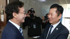 [아이뉴스24 곽영래 기자]더불어민주당 정청래 대표와 전재수 의원이 12일 서울 여의도 국회에서 면담에 앞서 악수를 하고 있다- 2026-03-12 11:07