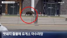 휴게소에 멧돼지가…女 화장실 문 ‘쿵쿵’에 ‘혼비백산’