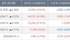[서울=뉴스핌] 로보뉴스 = 20일 10시 15분 현재 동국생명과학(303810)은 전일 대비 1.31% (현재가 3,490원- 2026-04-20 10:21