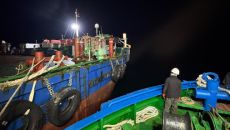 [김정훈 기자(=군산)(return1234@naver.com)] 전북자치도 군산시 인근 해상에서 조업차 이동하던 어선과 예인선- 2026-04-19 12:52