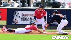 [사진]전준우, 한화 수비에 당했어
