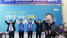 [김해=뉴시스] 김상우 기자 = 더불어민주당 정영두 김해시장 후보는 19일 시·도의원 출마자들과 용광로 선대위 발대식을 열고- 2026-04-19 18:45