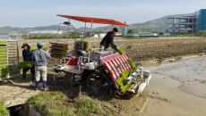 음성 감곡 오궁리서 올해 첫 모내기