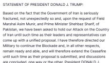 트럼프 "이란이 협상안 제출하고 논의될 때까지 휴전 연장"