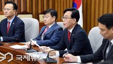 [이용우 기자] (서울=국제뉴스) 송언석 국민의힘 원내대표가 21일 오전 서울 여의도 국회에서 열린 원내대책회의에서 발언을 하- 35분전