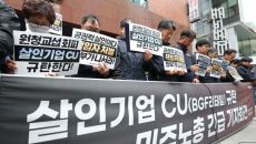 양경수 민주노총 위원장과 조합원들이 21일 오후 서울 강남구 BGF리테일 본사 앞에서 CU(BGF리테일) 규탄 긴급 기자회견을- 3시간전