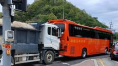 25t 화물차가 신입사원 33명 탄 버스 들이받아… 26명 부상