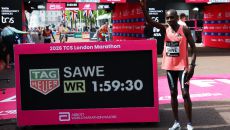 100m를 16.9926초 속도로 '42.195km 질주'→"달릴수록 몸 좋아졌다"…케냐 신예 사웨, 1시간59분30초! 마라톤 2시간 벽 무너졌다 (종합)