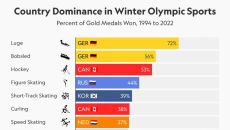 (엑스포츠뉴스 나승우 기자) 1994년부터 2022년까지 역대 동계올림픽 특정 종목에서 압도적인 성과를 낸 국가를 분석한 지표- 19시간전