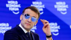 스위스 다보스 세계경제포럼(WEF·다보스포럼)에 참석한 에마뉘엘 마크롱 프랑스 대통령이 착용한 선글라스가 소셜미디어(SNS)에- 2026-01-22 18:49
