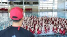 해군병 721기 훈련병들이 21일 경남 창원시 진해구 해군교육사령부 제2해상생존훈련장에서 전투 수영에 앞서 구호를 외치고 있다- 22시간전