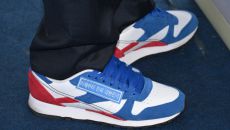 이재명 더불어민주당 대선 후보가 13일 ‘이제부터 진짜 대한민국’이라고 적힌 운동화를 신고 경북 포항시 포항시청 광장에서 지지- 2025-05-13 17:47