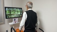 4일 오전에 찾은 서울 강남구 압구정 스마트경로당 2층. 시니어용 걷기 운동기(스마트워크) 화면에 가상 산책길이 펼쳐지자 이종- 0분전