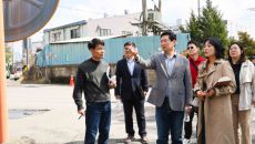 이상일 용인특례시장이 4일 기흥중학교 신축공사 현장과 인근 청곡초 통학로 현장을 살펴보고 있다/[사진=용인특례시][경기 용인=- 2시간전