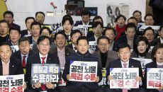 국민의힘 장동혁 대표와 송언석 원내대표 등 의원들이 19일 서울 여의도 국회 로텐더홀 단식농성장 앞에서 열린 '통일교 게이트·- 2시간전