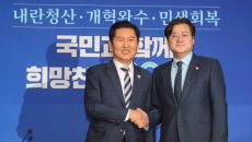 더불어민주당 정청래 대표(왼쪽)가 21일 오후 서울 여의도 국회에서 홍익표 신임 대통령비서실 정무수석을 접견하며 악수하고 있다- 1시간전