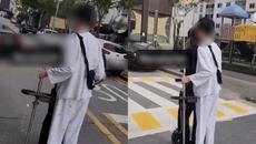전동 킥보드 한 대에 사람은 둘…링거 거치대까지 들고 타 논란