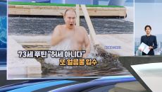 <현장 한 컷>입니다. 사진 속 푸틴 대통령이 얼음물 속으로 들어가는 순간이 포착됐습니다. 차가운 얼음물에 순간적으로 놀란 듯- 7분전