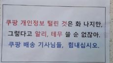 "알리·테무는 더 싫다, 쿠팡기사님 힘내세요"…배송기사 응원쪽지