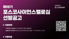 포스코청암재단이 국내 신진 과학자들의 성장을 지원하는 '포스코사이언스펠로십' 제18기 모집을 시작한다고 6일 밝혔다. 포스코사- 2026-04-06 09:00