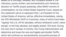 트럼프 "통상 관세 10→15%"...세계 정부·기업 '트럼프 눈치보기'