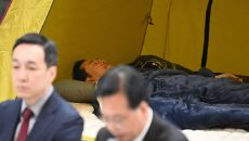 [아이뉴스24 곽영래 기자]송언석 국민의힘 원내대표가 22일 서울 여의도 국회 로텐더홀 단식 농성장에 마련된 텐트 안에서 통일- 5시간전