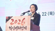 2026 혁신벤처업계 신년인사회가 22일 서울 서초구 엘타워에서 열렸다. 한성숙 중소벤처기업부 장관이 축사를 하고 있다. 박지- 1시간전