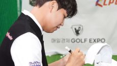 [mhn포토] 장유빈, 모자에 정성스러운 사인