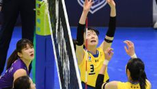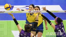 9일 수원체육관에서 열린 V리그 현대건설과 흥국생명의 경기. 흥국생명 김다은이 블로킹을 피해 공격을 시도하고 있다. 수원=박재- 11분전