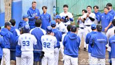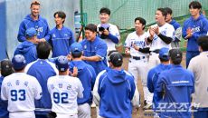 20일 일본 오키나와 온나손 아카마 구장에서 열린 대한민국 야구 대표팀과 삼성 라이온즈의 평가전, 4대3 승리한 삼성 선수들이- 1시간전