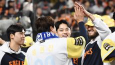 [포토] 동료 선발진 축하받는 류현진