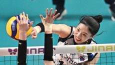 15일 서울 장충체육관에서 열린 배구 V리그 여자부 GS칼텍스와 IBK기업은행의 경기. IBK기업은행 육서영이 GS칼텍스 블로- 1시간전