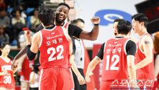 15일 잠실학생체육관에서 열린 프로농구 서울 SK와 창원 LG의 경기. LG 윤원상이 득점 후 환호하고 있다. 잠실=박재만 기- 49분전