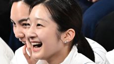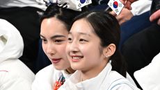 8일 이탈리아 밀라노 아이스스케이팅 아레나에서 열린 피겨 팀이벤트 남자싱글. 차준환 응원하는 신지아. 밀라노(이탈리아)=송정헌- 2026-02-08 04:15