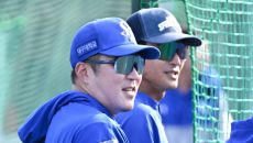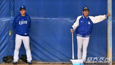20일 일본 오키나와 온나손 아카마 구장에서 열린 대한민국 야구 대표팀과 삼성 라이온즈의 평가전, 박세혁, 강민호가 훈련을 하- 7시간전