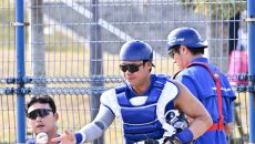 20일 일본 오키나와 온나손 아카마 구장에서 열린 대한민국 야구 대표팀과 삼성 라이온즈의 평가전, 맷 매닝 불펜 피칭을 박진만- 7시간전