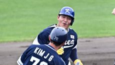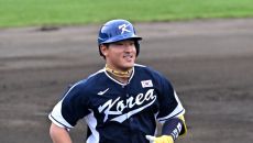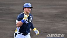 20일 일본 오키나와 온나손 아카마 구장에서 열린 대한민국 야구 대표팀과 삼성 라이온즈의 평가전, 안현민이 솔로포를 날린 뒤- 4시간전