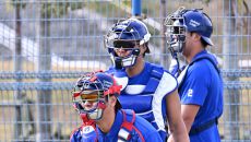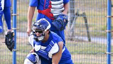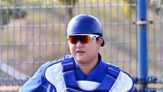 20일 일본 오키나와 온나손 아카마 구장에서 열린 대한민국 야구 대표팀과 삼성 라이온즈의 평가전, 장승현이 수비 훈련을 하고- 5시간전