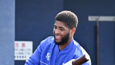 20일 일본 오키나와 온나손 아카마 구장에서 열린 대한민국 야구 대표팀과 삼성 라이온즈의 평가전, 디아즈가 훈련을 하고 있다.- 5시간전