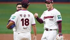 [포토] 키움 1루수 박병호, 박준현에게 공 건네며 은퇴식 피날레 장식