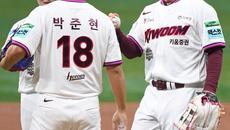 [포토] 키움 1루수 박병호, 박준현에게 공 건네며 은퇴식 피날레 장식