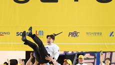 [포토] KB스타즈 김완수 감독, 통합우승 헹가래