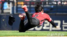 26일 광주KIA챔피언스필드에서 열린 롯데와 KIA의 경기. 7회초 무사 1루 김도영이 장두성의 번트 타구에 몸을 날렸으나 잡- 2시간전