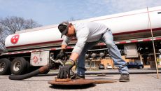지난달 26일(현지시간) 미국 테네시주 킹스턴스프링스에서 유조차 운전자가 기름을 주유소 저장 시설로 옮기는 작업을 하고 있다.- 2026-04-07 11:58