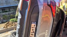 앞차에 실린 파이프와 충돌 후 전도된 SUV 40대 운전자 중상