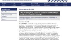 미국 금융당국, 선물거래소 ‘코인현물’ 상장 허용…제도권 완전편입 선언