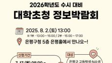 서울 은평구(구청장 김미경)는 다음 달 2일 관내 고등학생과 학부모를 대상으로 ‘2026학년도 수시 대비 대학초청 정보박람회’- 2025-07-18 07:53
