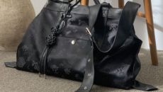 검은색의 한복 원단과 가죽 소재를 결합해 만든 가방, 가방의 옆 부분에 달린 것은 댕기다. 댕기 모양을 본떠 장식한 게 아니다- 2025-12-26 07:30